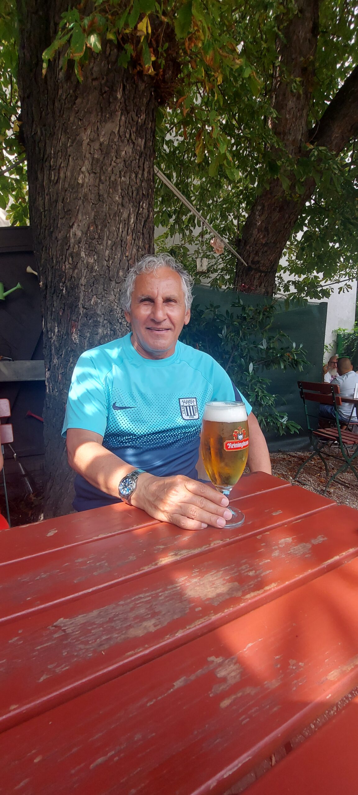 Estábamos haciendo un un tour familiar a lo largo de Alemania, Austria, diferentes ciudades. Entonces mi papá no es de tomar cerveza pero sabe que aquí en Europa venden la cerveza sin alcohol, entonces se dio esa licencia, de querer probar en cada ciudad que iba. Si estaba en Hamburgo, su cerveza sin alcohol y ahora que estuvo acá en Viena, mi cerveza sin alcohol. Igual la vienesa, la más popular, quería tener diferentes texturas, sabores, para vivir la experiencia.