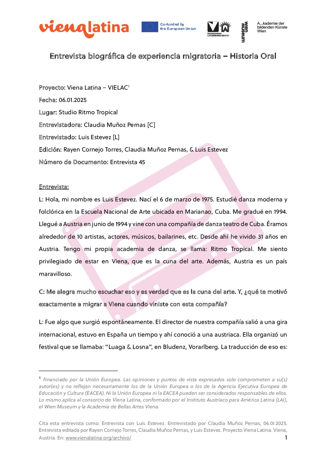 Aquí se encuentra un archivo digital que preserva la memoria de la migración latinoamericana y caribeña en Viena. En el marco de Viena Latina, cada persona de esta región residente en Viena tiene la oportunidad de compartir sus memorias personales: fotografías, cartas, visas, certificados de residencia o escolares, y mucho más. Cada uno de estos documentos ofrece una breve explicación sobre su relevancia para la experiencia y la memoria individual.